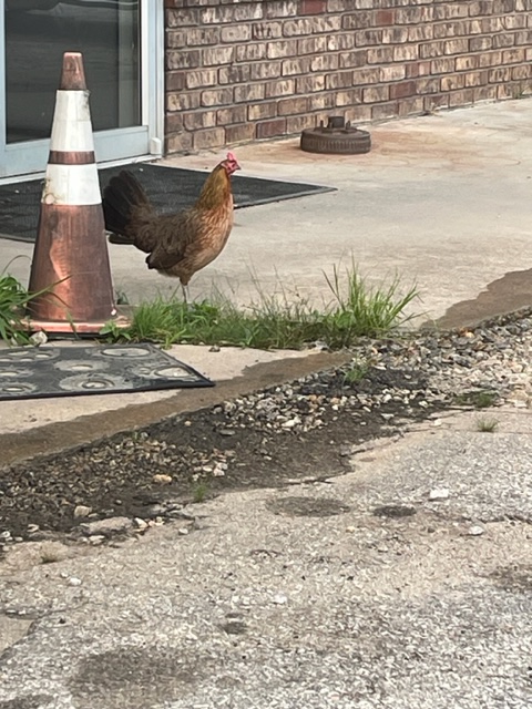 This chicken greeted us when we pulled up to the tire place. Her name is Chick-chick. That’s another story, but the people were so nice and they had our tires in stock. So, with two new tires, we were back on the road.